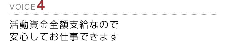 お仕事の資金は全て会社負担なので安心です。